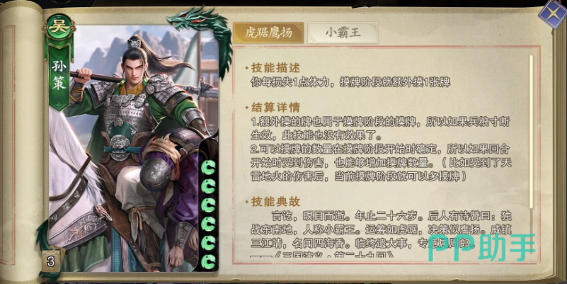 首推的武将是孙策和周瑜,孙策的核心玩法就在于卖血换牌,每损失一点体力值就可以多摸一张牌,抽到好牌的概率比较大。当手牌数是全场最高的时候,弃牌阶段大家能够发动二技能额外打一次决斗。