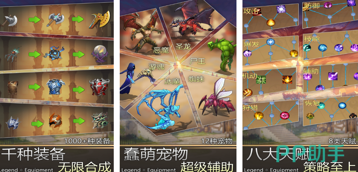 《传奇装备》立足于经典传奇端游的传承与打造,画面虽秉承像素半写实风格但表现细腻:人物技能动画爆发强烈,火焰术、雷霆术等高光特效无明显延迟,战斗时怪物消散的碎片粒子氛围逼真,野外城池与白日夜间景色切换也相当顺畅,整体反馈强烈且贴合传奇IP底色。同时,这款游戏以经典通天塔、boss挑战、行会攻沙与野外爆装为主要玩法。特色在于“装备捡取与运气系统”:每击败Boss都有概率掉落橙装神装,且开启装备之后会显示物品特性养成方向,为“最优爆装”提供明显目标。