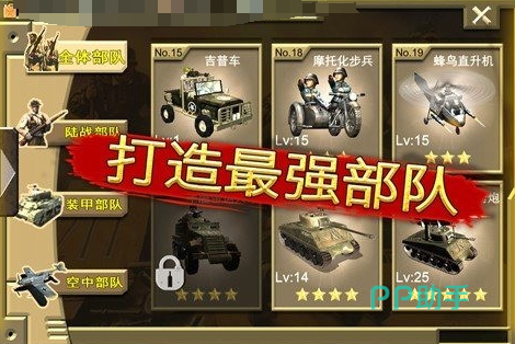 游戏运用实时对战机制,玩家将扮演一位睿智的指挥官,于形形色色的战役里巧妙部署兵力,充分施展军事谋略,引领士兵冲锋陷阵。游戏中军种繁多、装备多样,战略搭配更是灵活多变,能让大家尽情享受精心策划的乐趣。此外,游戏地图涵盖了城市街巷、广袤原野等不同地形与场景,为大家营造出丰富多元的战斗氛围,沉浸式体验二战的烽火岁月。