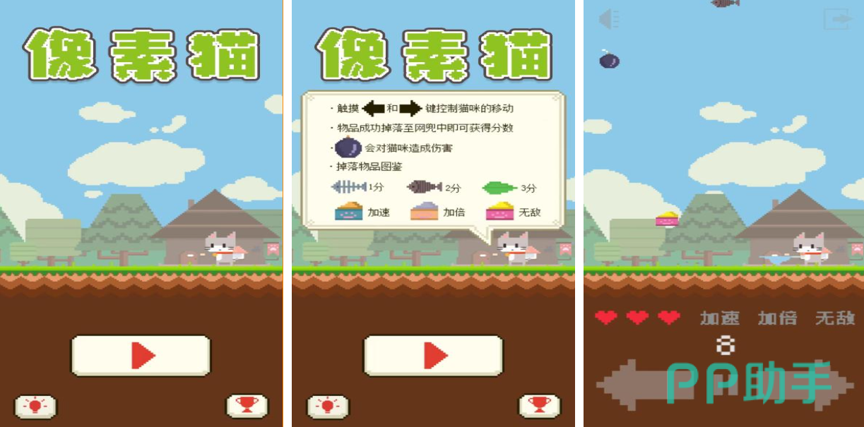 在这款像素冒险游戏中你会成为像素猫展开冒险,高互动性带来的像素世界冒险机制可玩性极高,具备竖屏操作和简单的按键体系,你可以轻松操作像素猫在开放像素世界历险,亦可自由进行加速让游戏进度更快,像素风格场景和可爱像素猫的造型相得益彰,增益道具众多能轻松协助可爱的小猫度过难关,喜欢像素RPG游戏的朋友在像素猫这个APP中互动吧。