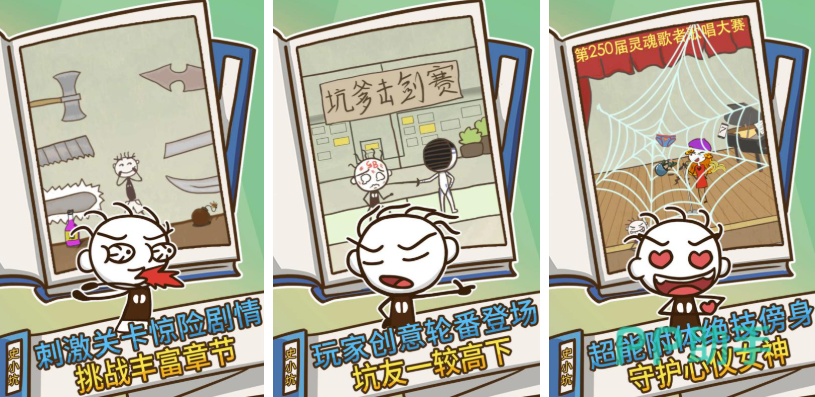 史上最坑爹的游戏3游戏中,设置了一系列让人意想不到的关卡挑战,每个关卡都不走寻常路,突破玩家常规思维,在一些看似简单的场景中,按照常规思路操作往往会失败,玩家需要打破惯性思维,从一些奇葩、意想不到的角度去思考和行动才能通关,游戏还充满了各种幽默搞笑的剧情和画面,在玩家绞尽脑汁通关后,会被其中的无厘头设计逗得捧腹大笑。