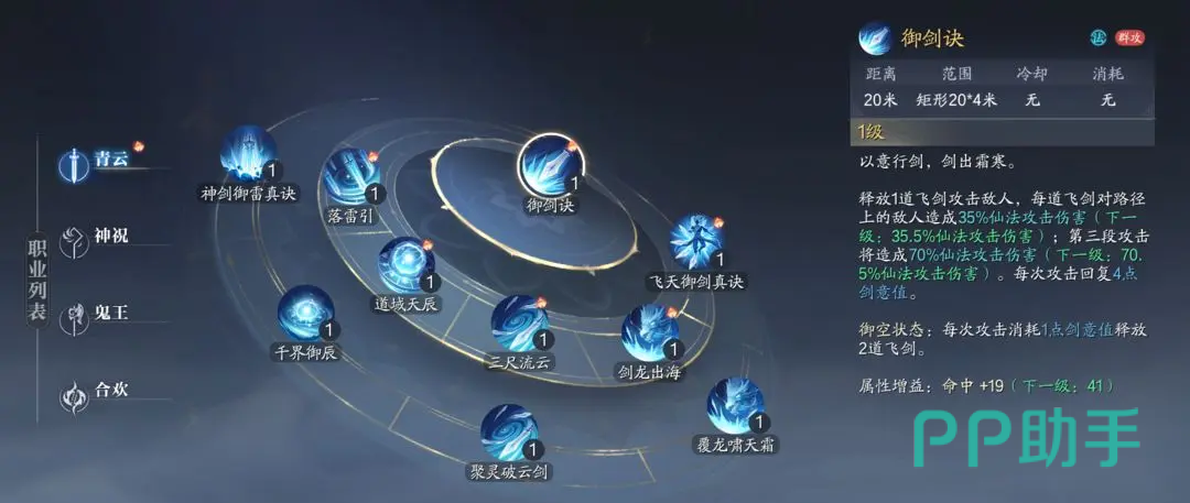 这也是该职业主要的输出手段,剑意值只要积累到足够的程度,就能使用,角色会进入御空当中,此时的移速,以及仙法攻击力度都进行增强,法术效果均得到强化,在该状态中,他们可一次发射12道飞剑对单一目标进行攻击,单个敌方会受到致命的打击;还有其他很多招式具备强力控制效果,比如“剑龙破海”,能给敌方添加冰冻状态,此时更利于队伍集火敌人,不管是PVP,还是PVE都能有出色发挥,以一手优异的控制和输出能力闻名。