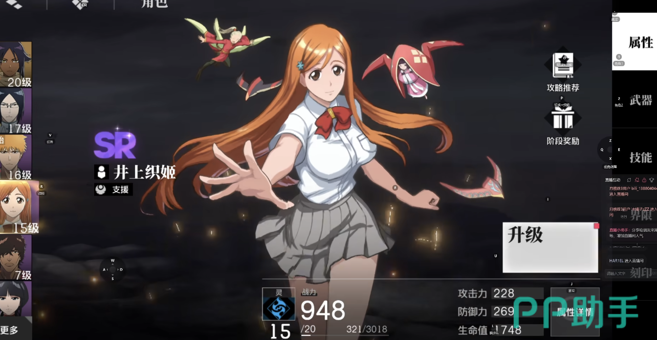 井上织姬是一个厉害啊的辅助角色,可以远程攻击敌人,他得光之力量持可以续造成伤害,削弱地方护甲。血量降至 30%以下触发被动获得护盾,为队友增加攻击力的同时,护盾也能同时开启,其大招让全队都可以获得一定生命回复。