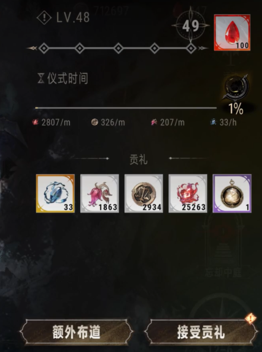 盈月贡礼系统的运作基于“盈月信念”这一核心。每完成5次主线剧情或困难模式的关卡,盈月信念便会提升一级。随着信念的提升,玩家每天能够通过布道获得的贡礼数量也会增加。这些贡礼包括了丰富的资源奖励,以及一些随机道具,是帮助玩家提升角色能力和装备的重要来源。
