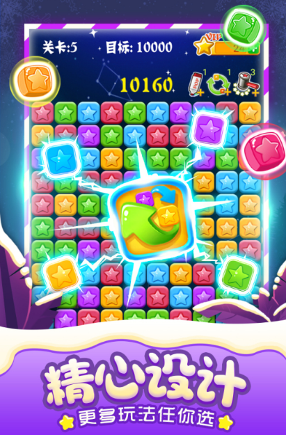 这款以小星星为主题的三消手游,延续了比较传统的消除玩法,玩家可以体验道具与技术相结合的快乐。系统塑造的精美主题包含大量消除关卡,游戏方法如同所有三消手游一样,只需三个及以上元素连接在一起即可得分。本手游除了消除的玩法,在新版本中增设了障碍赛和解谜等模式,既可以在断网状态下畅快体验,也能邀请朋友进行同屏对战。