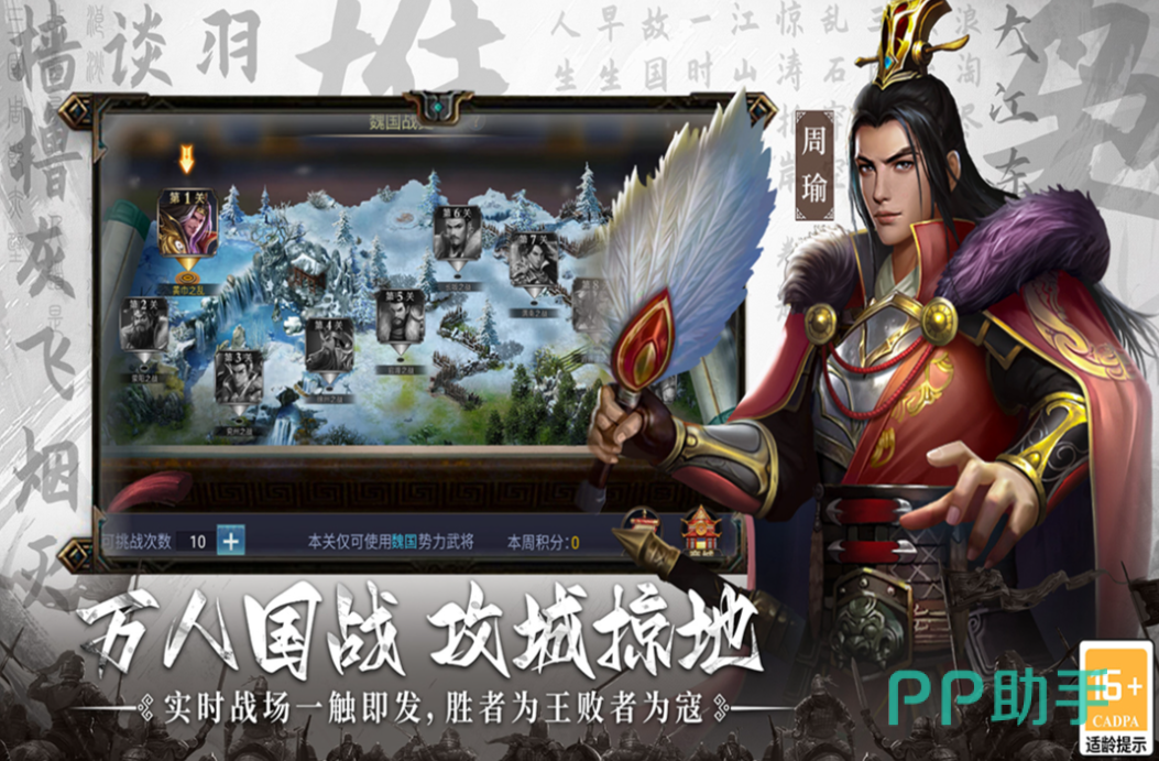 这款游戏让大家来到辽阔无边的三国世界。游戏将诸多三国角色塑造的栩栩如生,且他们都可以被你招揽为打手。游戏拥有实时国战玩法,大家能够和一众玩家较量智勇、策略博弈,看谁道高一筹,说不定还能多几个兴趣相契合的挚友。游戏为新老手玩家送福利,首次登录就送五星神将,持续签到就有海量资源来挥霍。