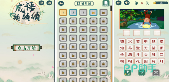 其中海量题库任凭玩家随意挑战,这里的关卡内容都是循序渐进,而且也是通过解锁的方式来挑战,在每个关卡开始之后都会有不同的题目,有的需要根据具体的图片猜出正确的成语,有的是需要完成成语接龙的任务挑战。简洁的游戏画面以及简单的操作方式,也适合所有年龄段的人群。