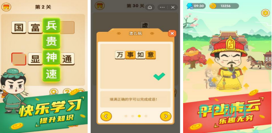 将成语闯关以及三国的元素结合起来,这里还融入了多样化的玩法,比如成语接龙以及合成的玩法等等。您在开局之后只扮演的是一名小兵,通过成语闯关的方式来提升自己的官职,通过一步步的努力,最终走向了人生巅峰,这里也涵盖的词汇量特别丰富。总会让玩家欲罢不能,完成关卡的挑战后也可获得相应的金币奖励。