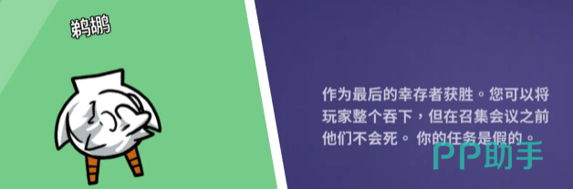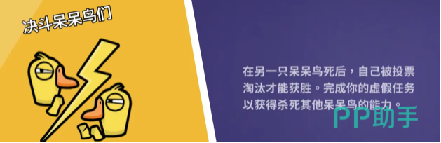 决斗呆呆鸟们在另一个呆呆鸟死亡以后,自己被其他玩家给投票淘汰了才能获得胜利。