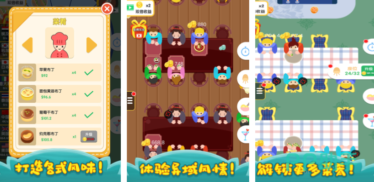 动物餐厅游戏中,以放置挂机为基础玩法,玩家初期需频繁手动点击、升级餐厅设施来获取收益,随着设施不断完善,挂机收益逐步显现,餐厅中玩家可招募可爱猫咪员工,共同经营,游戏还设有丰富互动元素,玩家能通过信件、对话了解角色间的羁绊故事,除经营餐厅玩家还能解锁种花、钓鱼等多元玩法。