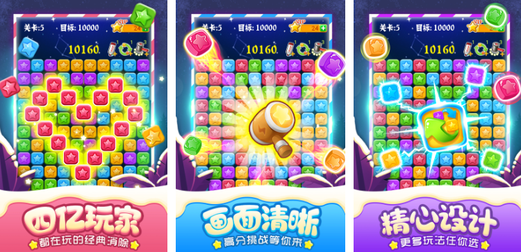 在消消星星乐:最新版游戏中,以清新可爱的画风与丰富多元的玩法,为玩家呈上别样的消除体验,在游戏里玩家通过点击相邻同色星星来实现消除,简单的操作中蕴藏着无尽策略可能,连击机制是一大亮点,玩家若能巧妙规划,连续消除便能触发强力连击效果,收获高额分数奖励,让游戏过程紧张刺激又充满惊喜。