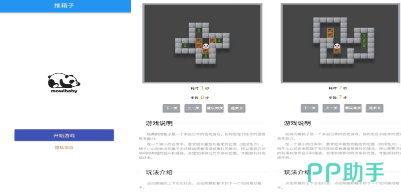 在推箱子游戏堪称休闲益智领域的经典之作,画面简洁明了玩家可操控小人在方格地图中灵活移动,推动箱子到达地图上标记的目标位置,游戏规则简单易懂,但每一关的箱子布局与地形设计都暗藏玄机,需要玩家深入思考,规划出合理的推箱子顺序与路线。