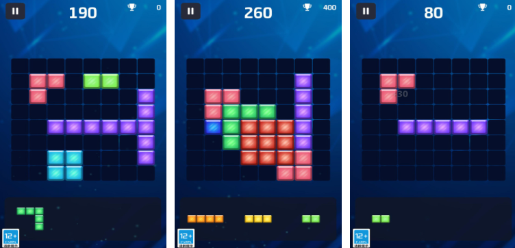 俄罗斯方块游戏中,完美复刻了这款风靡全球的游戏,玩家在游戏中操控经典的方块形状,使其下落至游戏区域,通过精准的平移、旋转操作,将方块安置在合适位置,当一行被方块完全填满时,该行方块即被消除,玩家得分增加,游戏节奏由玩家自行掌控,可选择快速下落追求高效消除,也能谨慎思考精心布局。