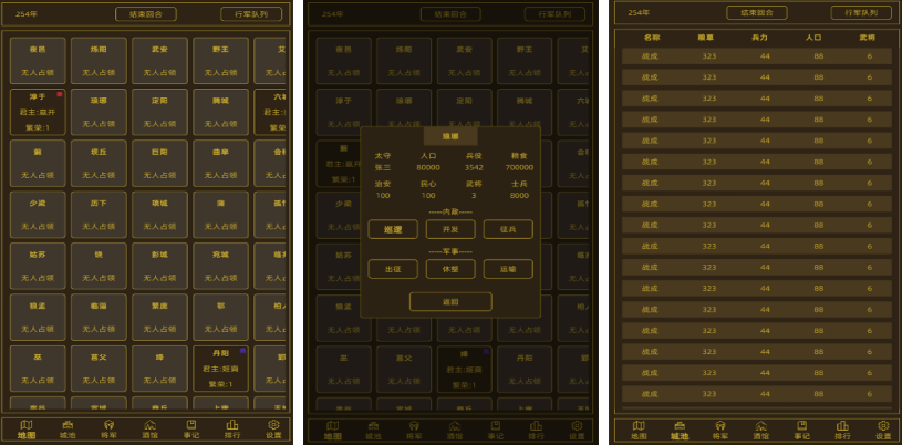 在领国战争游戏中,主打国家间策略对抗,玩家创建国家后着手发展内政,建设城堡、矿场等基础设施,保障资源供给,升级科技提升国力,外交层面与其他国家开展贸易往来、缔结联盟或挑起战争,决策影响国家发展走向,军事方面组建陆军、海军等多兵种部队,玩家需合理搭配各兵种数量。