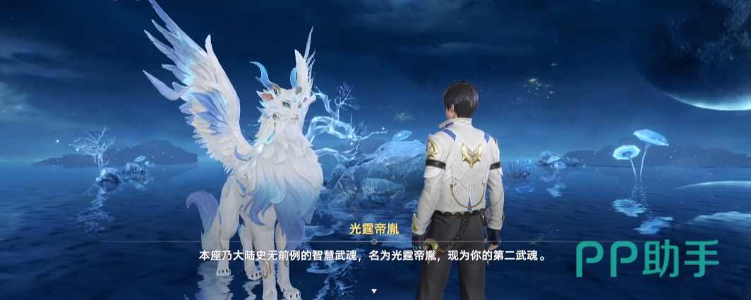 其实这个阶段,也是穿插在剧情当中,系统对大家的一次新手战斗教学,这里会学习一些基础的战斗操作,如何使用大招,怎么升级武魂,获得全新的技能,这样对于战斗的基本情况,就融入在剧情当中进行了简单的教学,将魂兽杀了之后,就可以知道这个引导的叫做“光光”。