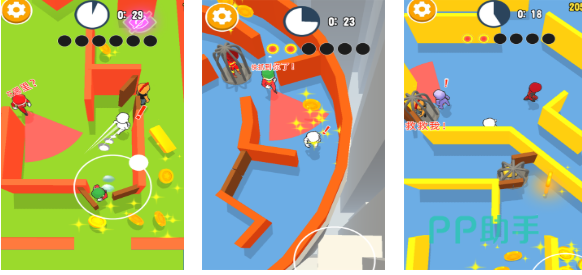 开心捉迷藏是采用了特殊上帝视角的走迷宫类躲藏游戏,特殊的解谜模式和操作机制会让大家眼前一亮,迷宫一般深邃的地图增加了捉迷藏的难度,化身不同的身份在迷宫中躲避追杀的流程更为爽快,背景渲染色彩鲜艳具备着绝佳视觉享受,众多躲藏、抓捕类的任务加持让本作耐玩性水涨船高。