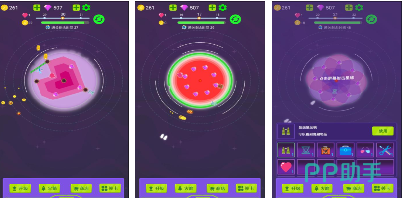 这是款拥有竖屏2D画面的小行星摧毁主题游戏,玩家将驾驭专属的小飞船在不同星系中摧毁行星,主打破坏的游戏理念让这款神作解压感十足,同样本作也提供了多元化毁灭道具等待解锁,各种造型唯美的小行星看上去都十分精致,绝美的宇宙背景配以各种颜色的星球更是美轮美奂,一起在浩瀚奇特的宇宙空间中摧毁地球吧。