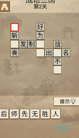 玩家将化身乱世中的无名小卒,通过破解一个个成语谜题来积累战功,逐步晋升为统军大将。游戏采用渐进式难度设计,从简单的四字填空到复杂的典故接龙,既考验玩家的词汇储备,也暗藏历史典故的巧妙彩蛋。随着官职晋升,玩家还能解锁不同时期的经典战役剧情,在文字游戏中体验"舌战群儒"的智谋交锋。