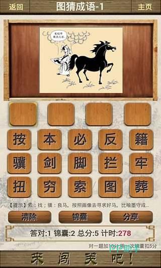 《看图猜成语》成语可以说是囊括了中华汉字的精华,每一个看似简单的成语背后,实则隐藏着莫测高深的文化底蕴,游戏设计的图文,都能够精确无误的贴合当前成语所描述的意境,通过在游戏层层叠叠的闯关挑战,不但能够让你循循善诱积攒成语知识,还能让你享受到一种大脑焕然一新的爽快感。