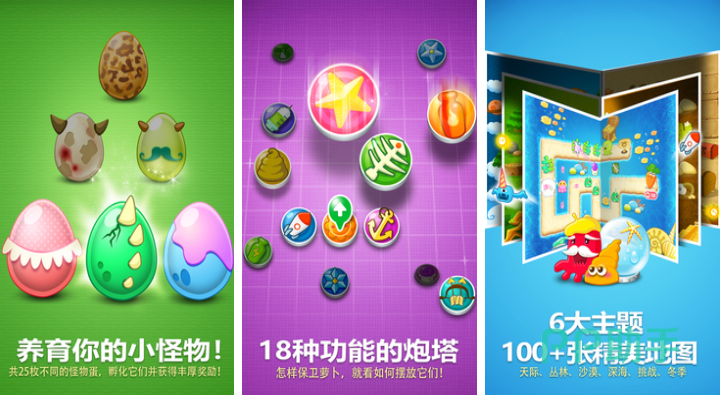 本作是智能机时代问世的卡通风格独立塔防游戏,拥有特殊的防御机制和卡通美观的UI,超多有趣的关卡和精美地图带来了很高耐玩性,超丰富的防御道具会给予玩家很多支持,功能不同的炮塔可随意建设抵抗兔子军队的入侵,保护萝卜也是玩家的唯一任务跟游戏的主题交相呼应,无数可爱的小怪物宠物也坐等玩家饲养。