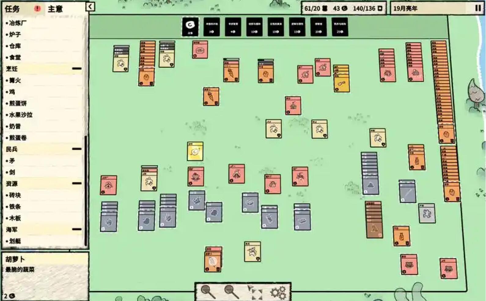 将生存玩法与卡牌策略结合,玩家通过抽取卡牌获得资源、建筑和角色,逐步发展自己的村庄。游戏的核心玩法是资源管理和人口增长,比如用“村民+木材”合成“伐木工”,用“苹果+土壤”种植果树。战斗系统简单但富有策略性,玩家需要组建民兵对抗怪物。独特的合成机制和轻松的画风,让生存玩法变得新颖有趣。