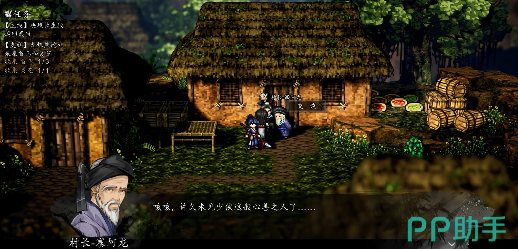 各位在来到百药谷后,可先去找村长寨阿龙接任务,他会请求玩家帮他去收集槐花,各位可在他右边的地图里找到目标大树并能在这里找到一把银梳,拾起后雅姑就会出现,将事情的原委全部告知玩家,并请求玩家帮她解蛊。