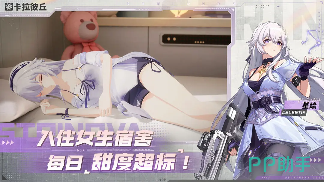 除了战斗模式的玩法之外,小伙伴们还可以体验其他的内容,比如休闲的女生宿舍,在这里小伙伴们可以近距离的接触自己喜欢的角色,还能和他们甜蜜互动。