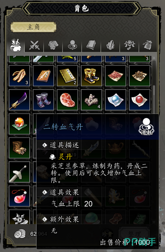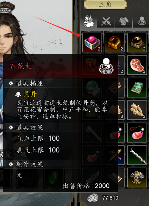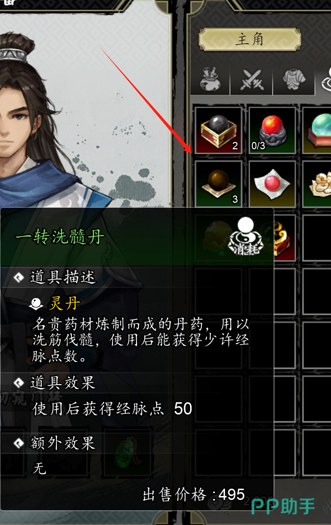 游戏中的丹药主要分为增加气血、真气、力道、筋骨以及经脉点等类型,玩家在游戏中分配丹药归属时可以按照主角优先、特殊剧情需要以及队友好感度等三点进行分配。