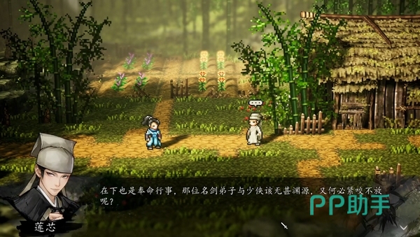到竹海深处寻找线索,这时候行凶者已离开案发地,在竹海茂密林间寻找蛛丝马迹,并与莲芯或其他NPC对话,如果这个时候还没触发莲芯入队的事件,建议先完成这个。