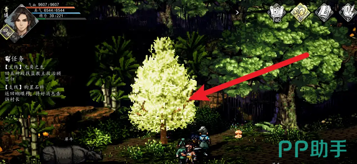 首先,你需要来到十万大山的区域,进入之后,按照提示走到一棵巨大的黄色大树前。往左一转,你会发现一条隐秘的小道。点击一下【密道】即可进入。这里就是通往藏宝洞的钥匙,走进去之后,你会发现有个隐藏的入口,点击一下【藏宝洞】,就能够顺利进入了。
