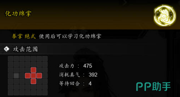 而在技能达到10级时,化功绵掌的威力将进一步提升,进入“化功绵掌”状态。此时,技能将额外使目标的真气减少200点,并且会对目标造成2到3层的散功效果。散功效果每层都会降低目标的真气恢复速度,最高可叠加6层,且每回合自动消退1层。如此一来,敌人不仅会因为破甲而防御大幅下降,还会因为真气无法恢复而无法施展强力技能,使得化功绵掌成为一项极具战略价值的技能。