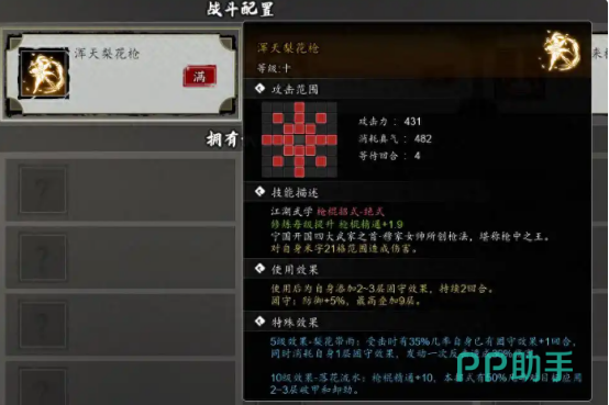吕仙儿属于枪棍系角色,与卫霍相比,吕仙儿初始的各项属性数值要更为出色,这让她在游戏初期就具备了一定的优势,能更轻松地应对各种挑战。当顺利完成吕仙儿的个人专属任务后,她还能习得一门独特的招式,叫做浑天梨花枪。这一招式非常实用,在施展时既能为自己增添防御,增强自身的生存能力,又能够对敌人造成破甲效果,削弱敌人的防御。