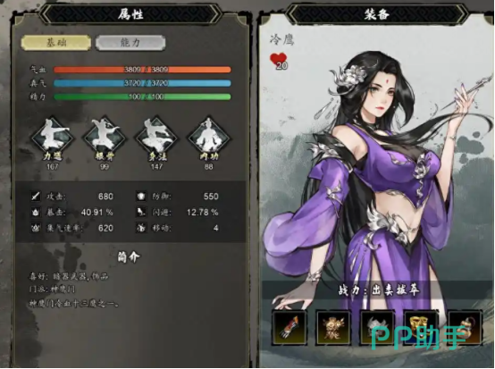 冷鹰这一角色,初始设定便展现出非凡的实力,尤其是她那敏捷的身手,配合上独有的轻功绝技,让她在战场上灵活穿梭,机动性堪称一流。在遭遇多面夹击的紧张局势时,冷鹰能够凭借高超的身法,先迅速解决一侧的威胁,随后又能在眨眼间转移至另一侧,为队友提供及时的支援。