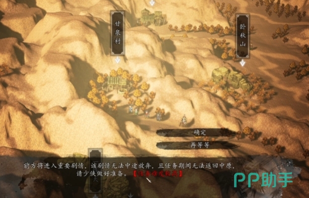 完成前置条件后前往西域的甘泉村,靠近村子时系统会提示重要剧情,进村便自动触发甘泉苦水支线任务,此时玩家会目睹村民正与来袭的马匪激烈对抗,随即进入二连战,成功击退神算子带领的马匪后,剧情继续推进,马匪残余竟称自己是被逼为匪的无辜村民,玩家无奈将他们拘禁在村子右上方屋子,与之对话可获取一些情报,不过部分版本对话可能导致后续剧情闪退,存档后操作更为稳妥,在与村长对话前,可先与村内裴庆、小娥对话,若司马玲、上官虹和吕仙儿在队,还能触发特定对话情节,这里有个小支线诊治裴庆,与小娥和裴庆对话开启,完成后可获得三品衣服和大师注解,此外提升村民万彪的好感度至70以上至关重要,这将影响后续剧情走向,可通过送礼达成。