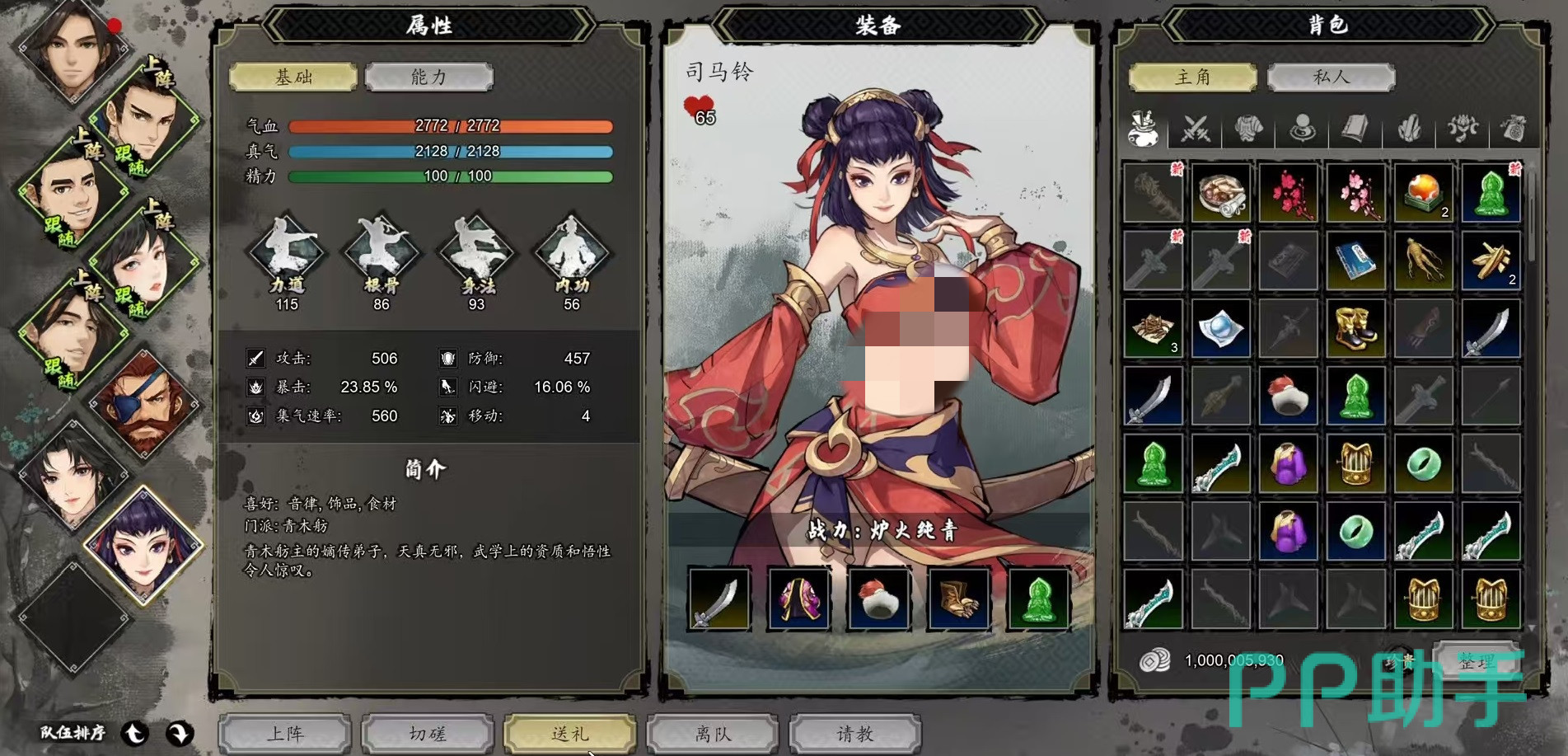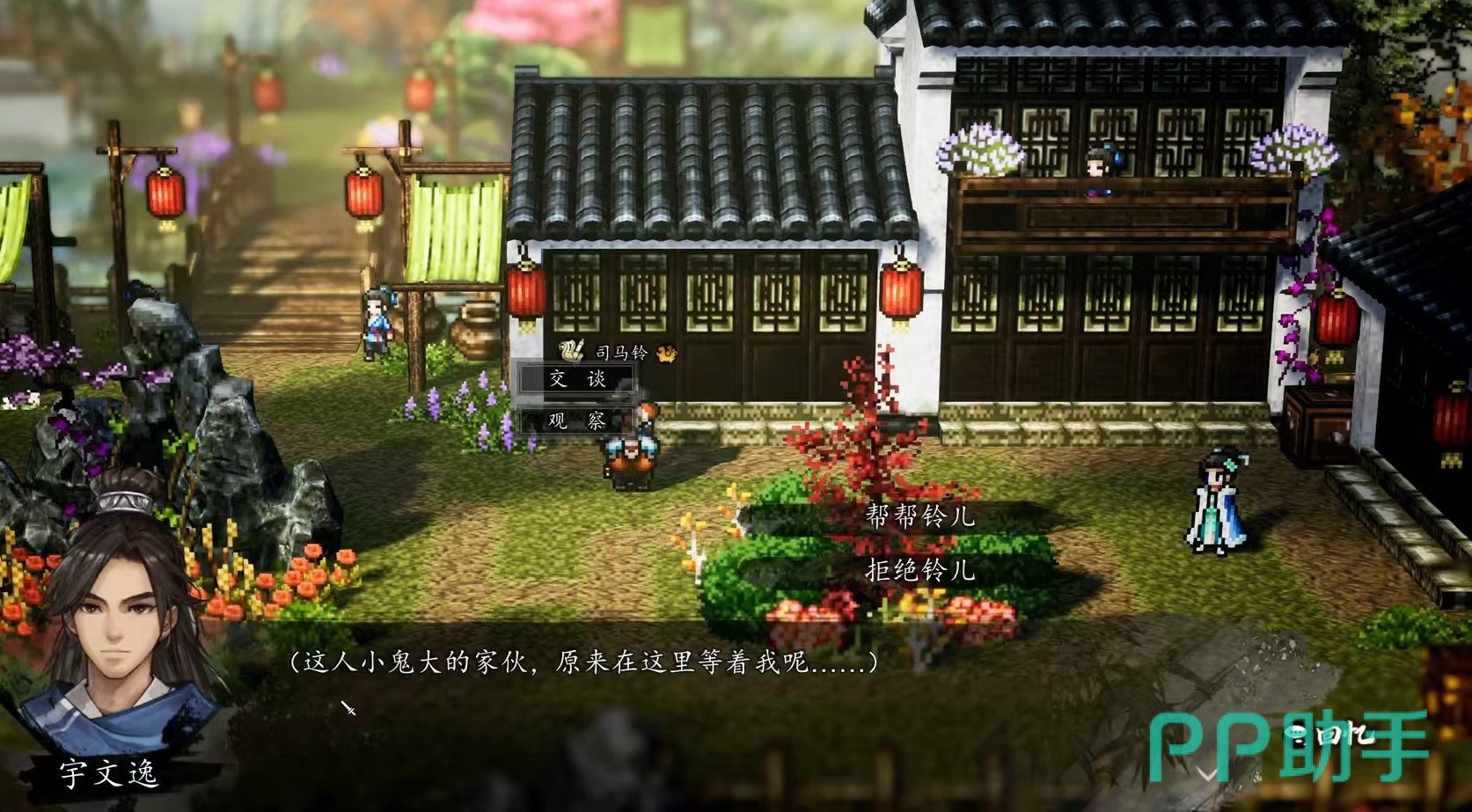 先来看一下如何将司马玲加入到自己的队伍中,首先需要触发上官虹的个人剧情白帝剑器,接下来将触发一个支线任务画访旧事。这时需要玩家前往青木舫和司马玲对话,选择帮助玲儿,这时司马玲会暂时加入到队伍中跟随行动。随后剧情将会自动带入竹海,前往地图左上角的屋子外左侧,去砍伐特质的青竹,之后触发和夜猫子的战斗,战斗胜利后能将司马玲的好感度提升到20点,司马懿会退出队伍。