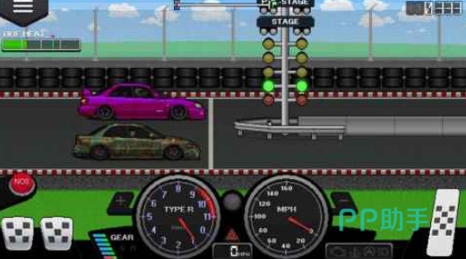 采用像素的风格进行设计,无论是里面的车辆还是环境,都是以像素的风格进行设计。身为像素赛车手的你,有机会驾驶着不同颜色炫酷的车辆,在城市道路以及各种环境当中,发挥车辆所具备的速度。屏幕上就会有车辆的仪表盘,以及刹车、油门按键,通过正确的点击以后,就能使车子拥有更快的速度。在玩法内容上也很丰富,支持对车子进行改装。