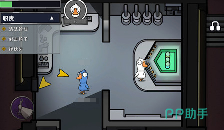 鸭阵营鸭子们的任务是阻碍鹅阵营完成任务,并尽可能多地消灭鹅,鸭子拥有伪装能力,会得到虚假任务清单,以此混入鹅群之中,它们能识别其他鸭子的身份,还具备破坏地图系统的能力,制造混乱场面方便自己暗中行动,鸭子可穿越通风口快速移动,出其不意地袭击鹅,当鹅的数量被削减到与鸭子数量相等,或者鸭子成功让破坏倒计时结束时,鸭阵营便能赢得胜利,中立阵营中立角色的获胜方式各不相同,为游戏增添了更多变数,呆呆鸟需要被其他玩家投票出局才能取胜,鸽子要在一轮会议召开前感染所有存活玩家,秃鹫则需吞食尸体数量达到总人数的三分之一方可获胜。