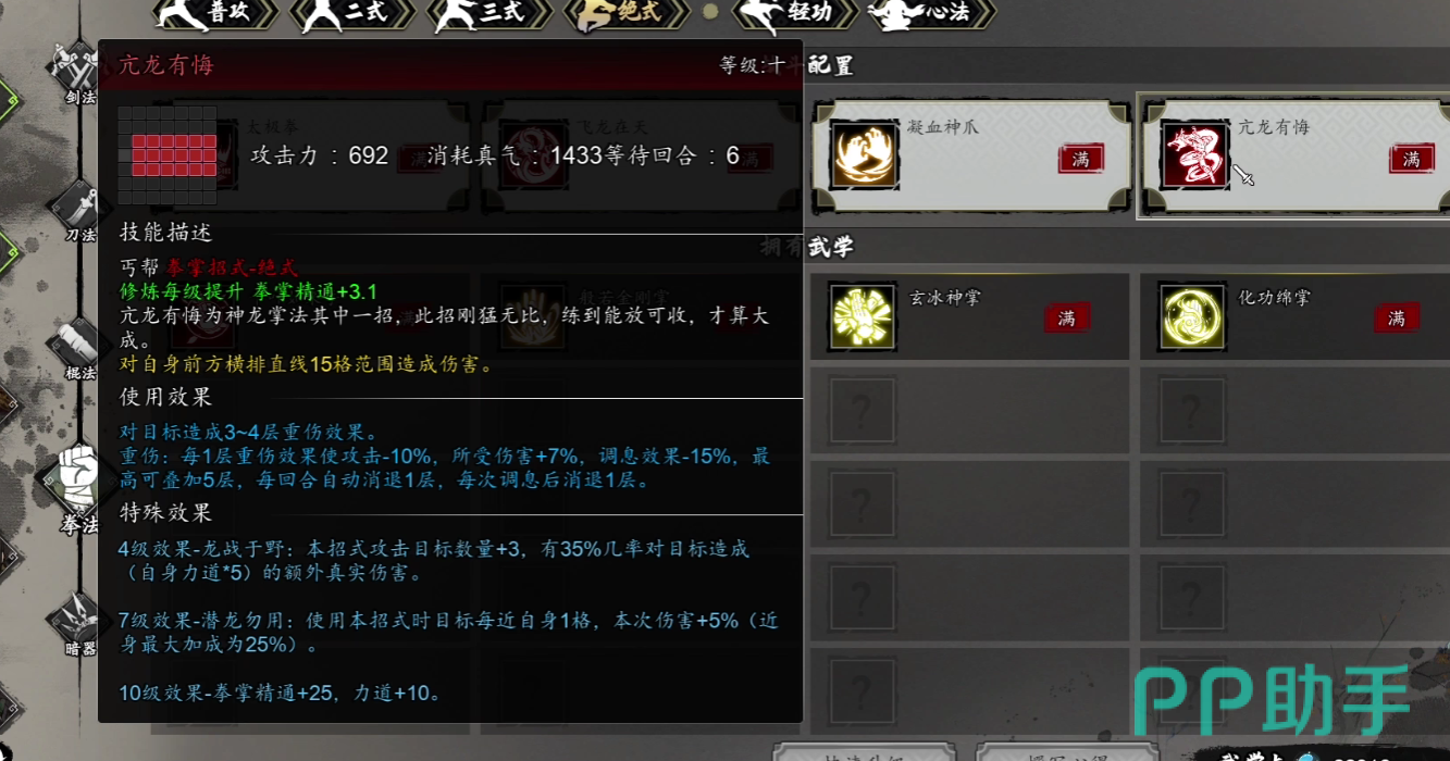 拳掌类的优势是,它能够在全收集精通达到660点时,自带爆伤能力,在使用亢龙有悔二段,以及摔碑手时,可以造成极大的技能机制碾压。