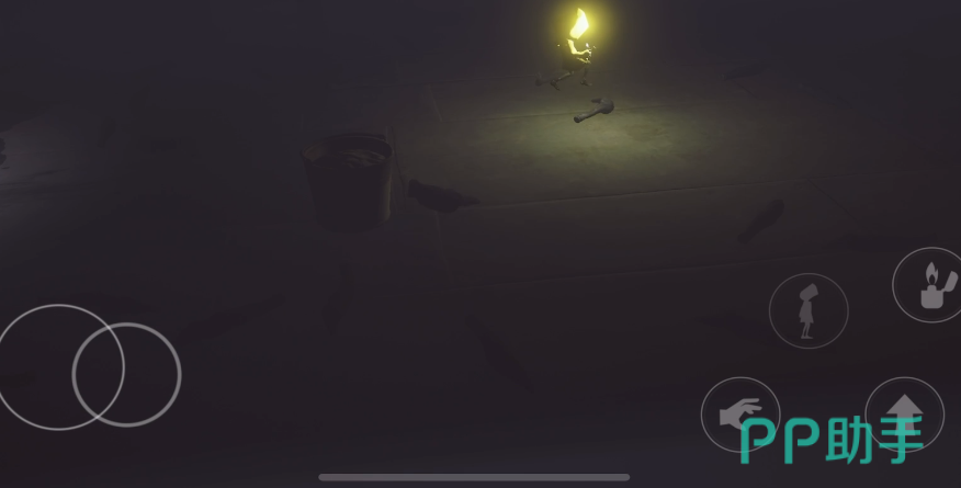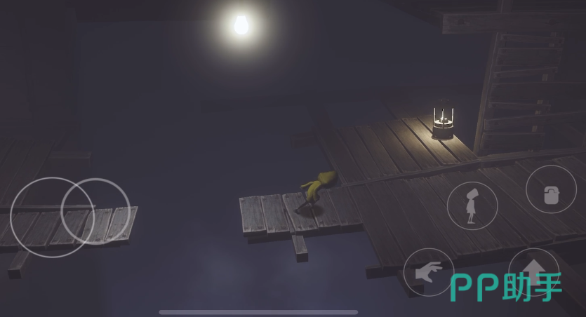 在小小梦魇这个游戏里,采用的是虚拟摇杆来控制方向,这个摇杆会出现在屏幕的左侧,玩家可以通过摇杆控制角色的前后移动,另外在右侧还会有跳跃键以及攻击按钮,同时还会设定一个抓取按钮,这样可以让角色去抓取场景中对自身有利的物品,同时还会设定一个蹲下的功能,这样能让玩家更好的在场景里进行穿梭。