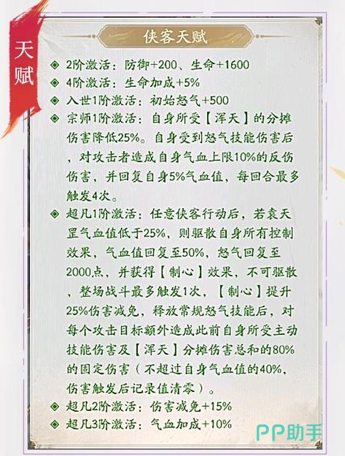 他的专武也赋予了他额外的控制力,可以说,袁天罡的独特机制让敌人难以应对。每当“浑天”效果触发时,他会给敌方侠客附加“伤害减少”的效果,这意味着你的前排不仅防御坚固,同时也削弱了敌人输出的潜力。这样的机制,让敌人在不断试图突破防线的过程中,遭受更多的困扰,前排侠客的生存空间变得越来越稳固,甚至能创造出一种良性循环,最终掌控整个战局的节奏。
