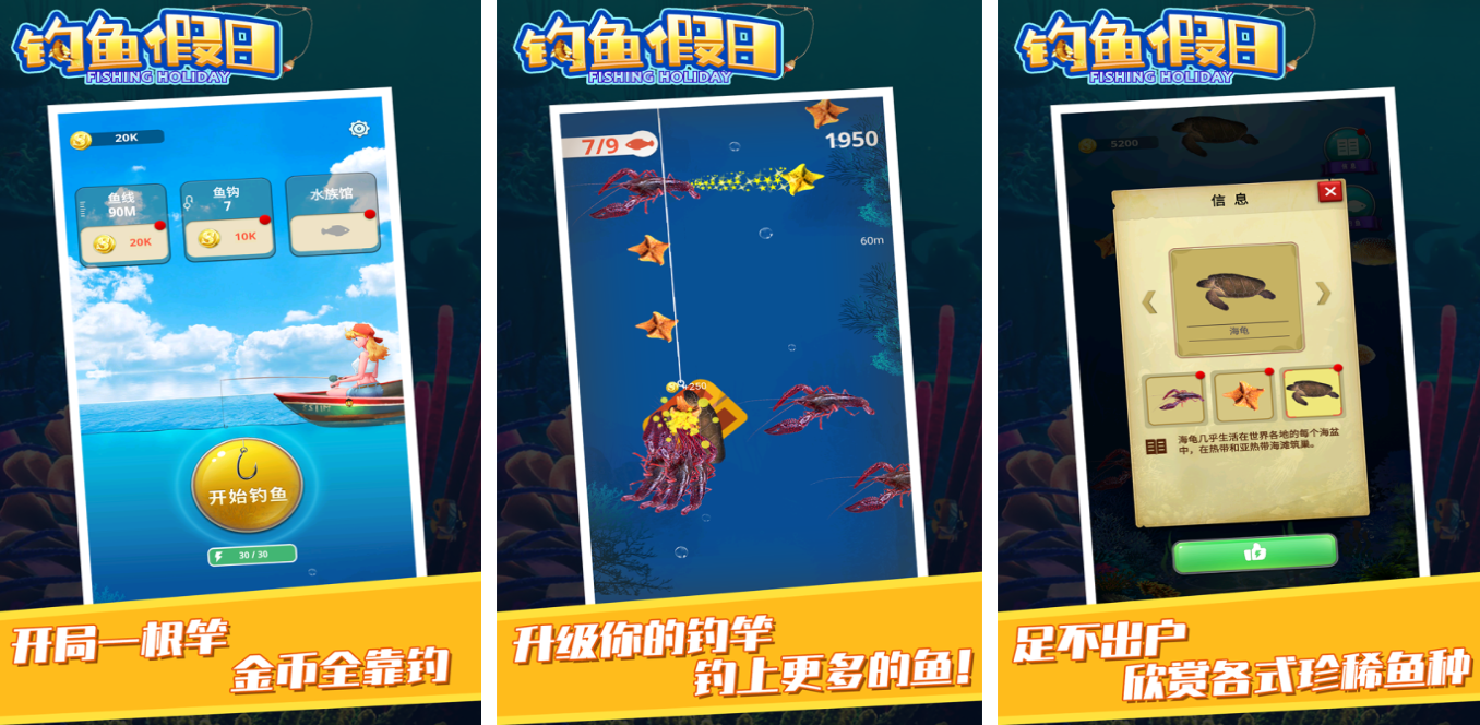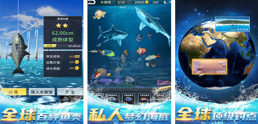 游戏带您畅游世界各大海域,发掘深藏水下的神秘鱼种。简单的触屏操作,即可完成全套钓鱼动作,每次收线都充满未知的期待。除了完善的水族收藏系统外,还能逐步解锁高性能钓具,显著提升垂钓成效。更可招募专业水手组建探险船队,共同探索人迹罕至的远洋区域,在轻松愉快的氛围中,体验团队协作与个人成长的完美结合。