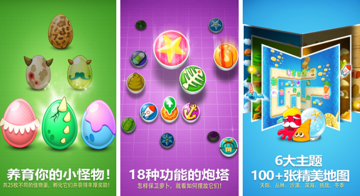 保卫萝卜是款无比经典的独立版本横版塔防游戏,玩家可尝试培育小怪物并完成各种塔防冒险,极高的互动性和辨识度令这款佳作魅力四射,六大不同主题的精美地图带来了无限新鲜的感觉,就连防御道具都呈现的呆萌无比还可以尽情强化,丰富的资源培养机制会让防御道具的实力大大提升。
