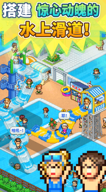 本手游以夏日水上项目为核心,玩家需要妥善管理小小乐园,利用创意和策略获取更多收益。游戏画面延续像素艺术,乐园里充满了各种娱乐与餐饮项目,玩家自行设计泳池的主题,根据游客反馈不断地调整优势项目。本游戏允许玩家通过策略进行水上乐园资源平衡管理,也可以加入市场系统和对手展开竞争。
