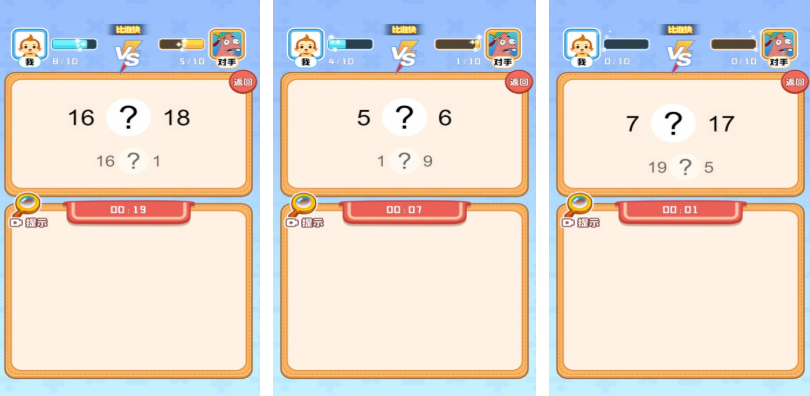 本作是拥有竖屏2D画风的休闲气质主题手游,滑动屏幕解答的游戏模式让代入感更强一些,形形色色的数字谜题启发了大家的数学思维,还设有双人PK模式和单人数字关卡很有趣味性,玩家可在排位赛系统中与不同数学高手对抗,用时越短答题的玩家越能获取到更高分数,智商极高的小伙伴在这款数字游戏中闯关吧。