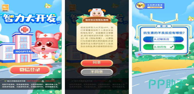 本作是款跟医学知识相关的竖屏启智类型作品,拥有特殊的医学知识互动玩法让大家智力飙升,各种医学知识也以问答方式教导玩家,游戏画风呈现卡通且谜题设计也并不困难,极为轻松的互动操作就可以学会很多医学知识,游戏展现出很高的亲和力能让玩家一步步了解专业医学常识。