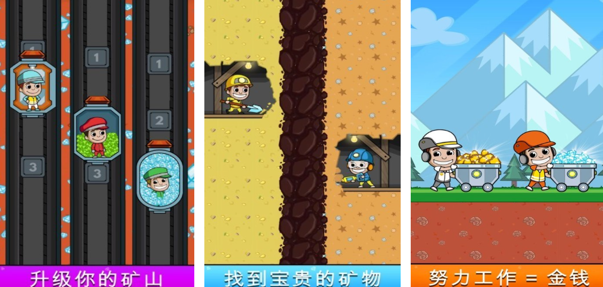 《挖矿大亨》是一款强调挂机放置与产业经营双重结合的策略型挖矿手游。游戏画面采用Q版卡通风格,矿山、矿工、运输车、冶炼炉等设施都设计得极具工业感又不失趣味性。多层矿井结构不断下探,配合动态动画与升级特效,构建出一座“矿业帝国”的视觉盛宴。该作核心在于“自动挖矿+多线升级”。玩家初期手动启动矿工挖掘,积累资金后可开启自动系统,并升级各类生产线设施:包括矿井深度、矿工效率、运输频率、矿石价值等。