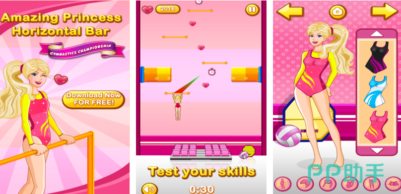 本作是款结合了体操互动和换装元素的芭比主题游戏,充斥着各种新鲜的互动玩法让女生玩家心驰神往,类似芭比娃娃的互动玩法也令玩家心驰神往,你可以扮演芭比娃娃进行平衡木、单杠互动,亦可切换各种体育服装让芭比造型更精致,高互动性的和娱乐休闲的性质令芭比游戏爱好者越玩越上瘾。