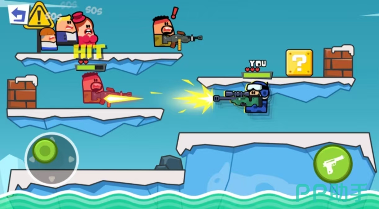 《口袋特种兵》提供了许多可爱的特种兵角,来到多种不同的战场上,利用手中的武器来对抗强盗。角色可以使用枪械或者是刀,只有强者才可以生存到最后,在战场上会随机的掉落装备和武器。捡拾起来可以在游戏内利用,提供了游戏模式有多种,每次将会来到不同的场景和布局中,可以看到战场上遇到的其他敌人,需要将敌方全部歼灭才能获胜。