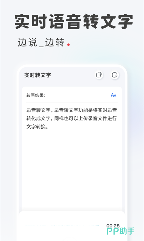 别看它小巧但是功是很多的,能随时录音、提供实时的语音翻译、录音转为文字这些方便的功能。除了可以准确的录下声音内容,边录边转更是可轻松搞定,转换后的文字内容想进行各种编辑或者复制分享也没有问题,准确率很高尽管放心,还可调节倍速去听。