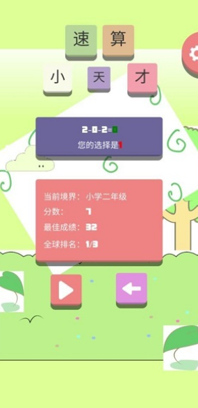 游戏采用动态难度调节系统,能根据玩家实际表现智能匹配适合的运算题型,包括四则运算、分数转换、指数计算等多样化题目类型。每次挑战后,智能评分系统会生成详细的成绩报告,不仅能展示实时排名,更能精准指出运算弱点,让玩家在竞技乐趣中持续突破速算极限,培养敏锐的数字直觉和超强心算能力。